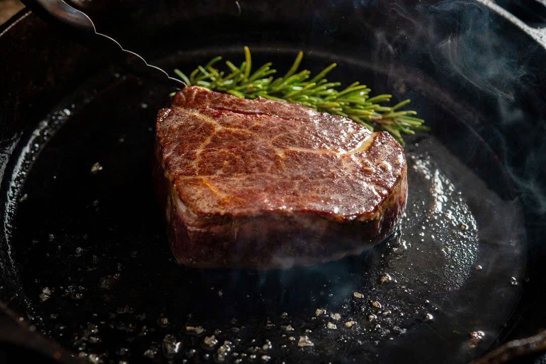 Khi chảo đã đạt nhiệt độ lý tưởng, thêm một chút dầu ăn có điểm khói cao như dầu hạt nho hoặc dầu canola. Đặt miếng nạc đùi Wagyu Úc vào chảo một cách nhẹ nhàng, không di chuyển thịt trong quá trình nướng để tránh làm mất nước và lớp vỏ giòn. Nướng thịt trong khoảng 2-3 phút mỗi mặt cho miếng thịt dày khoảng 2.5-3 cm để có lớp vỏ giòn và thịt chín tới mức rare (hiếm).